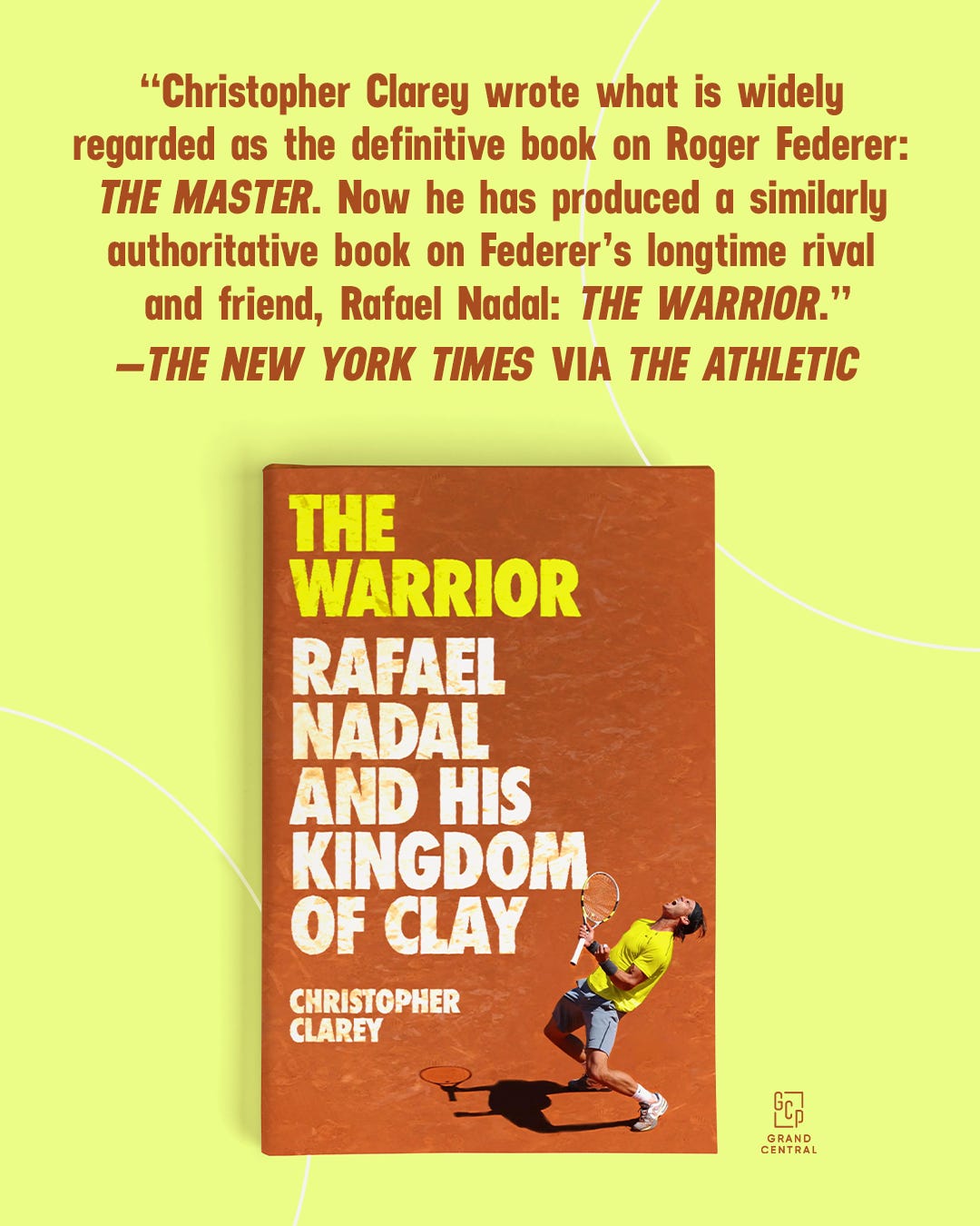 *Just released The Warrior, a major biography that goes deep on Rafael Nadal’s code and career and on Roland Garros, the dusty Parisian showplace where he redefined tennis dominance. The Warrior was called “scintillating” by The Wall Street Journal and “splendid” by The Daily Mail. It has also received positive reviews from The Financial Times, the Times of London, The Athletic, NPR, The Irish Times and Town & Country, which called it “a wonderful addition to the canon of great tennis books”. Kirkus Reviews said “it could serve as a model for other sports biographers”. Vogue called it “the definitive volume on the definite claycourt player of all time”. It has been published in English in North America, the UK, Ireland, Australia and India with editions in Italian, German, Dutch, Hungarian, Polish, Spanish and French with more to come.